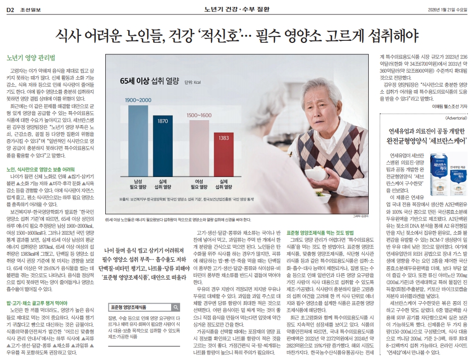※출처: 헬스조선 2026년 1월 21일자 '식사 어려운 노인들, 건강 '적신호'...필수 영양소 고르게 섭취해야'